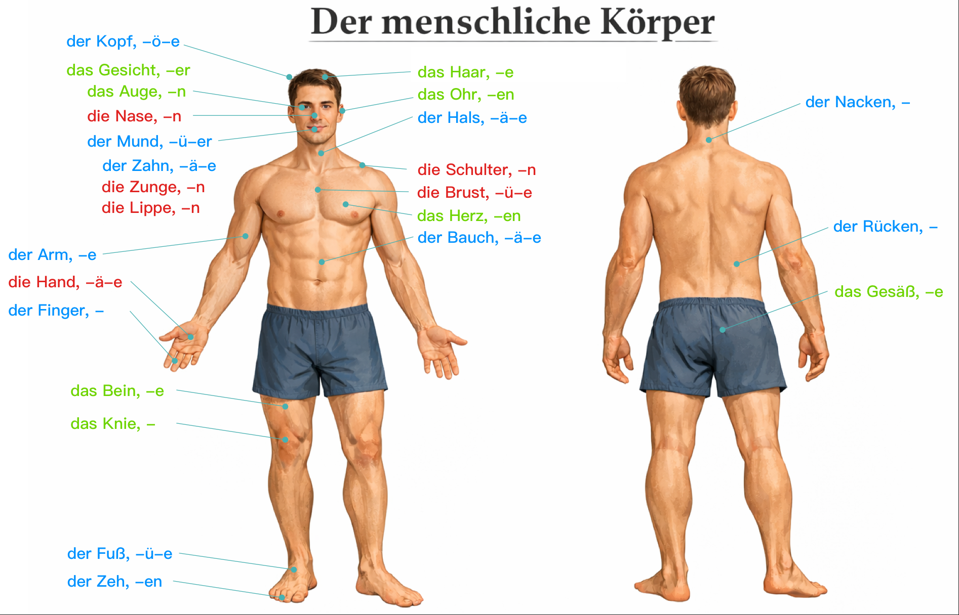 | 21 | 🟢 Gesäß 🍑 | -e | buttocks | 臀部 |